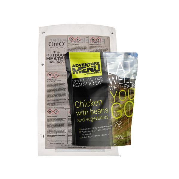 Deze Malse kip op groenteschotel wordt vergezeld van een vlamloze verwarmer. Het zorgt voor aanzienlijke autonomie omdat u geen kooktoestel, vuur of gas meer nodig heeft. Het is de ideale maaltijd om mee te nemen tijdens uw wandeldag om ruimte en gewicht in uw rugzak te besparen.