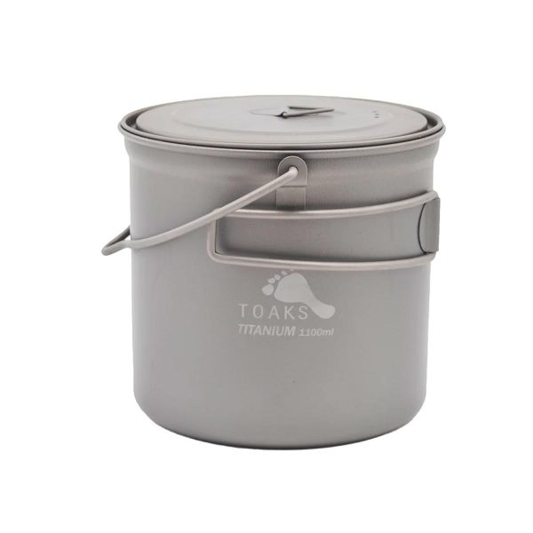 De Toaks 1,1 L titanium kookpot met afneembare handgreep is ontworpen voor wandelaars en bivakkers die de voorkeur geven aan licht gewicht en eenvoud. Het afneembare hengsel is bijzonder geschikt voor koken op open vuur: leg hem gewoon op een rooster boven de gloeiende kolen om je maaltijden in de natuur te bereiden.