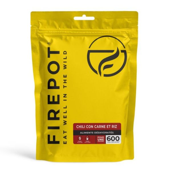 Deze Chili con Carne is een gerecht samengesteld uit 100% gedehydrateerde ingrediënten dat is gemaakt in Engeland door Firepot van OutdoorFood.com. Deze gedehydrateerde maaltijd samengesteld uit gerookt rundvlees, rode bonen en pepers zal je opwarmen tijdens je bivak na bijvoorbeeld een lange trekking.